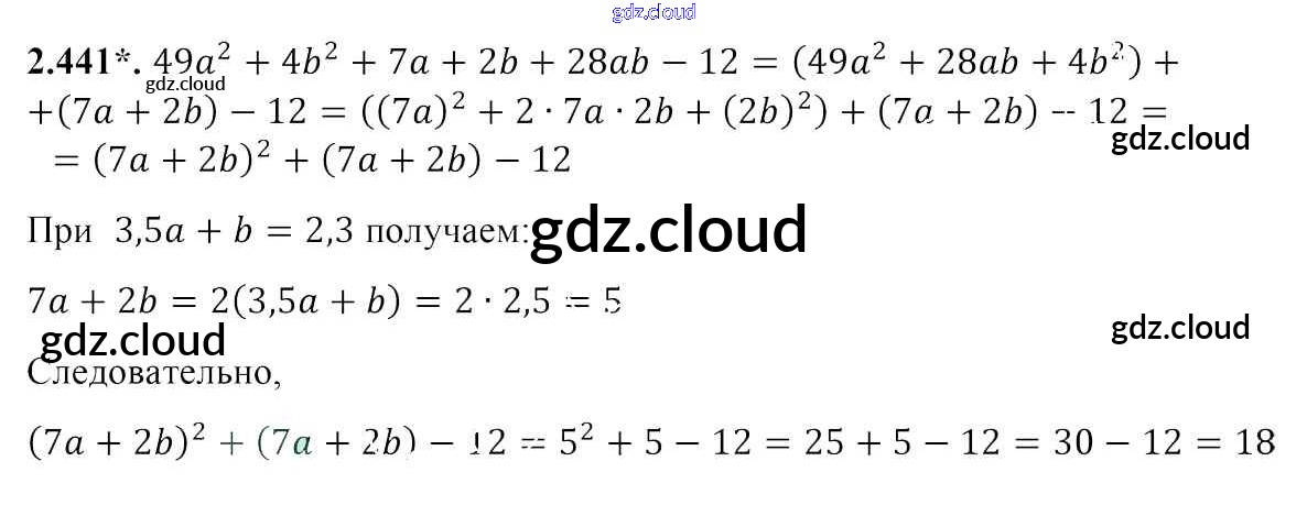 Ответ на задание 2.441 Учебник Алгебра за 7 (седьмой) класс Арефьева, Пирютко 2017 онлайн и без номера телефона.