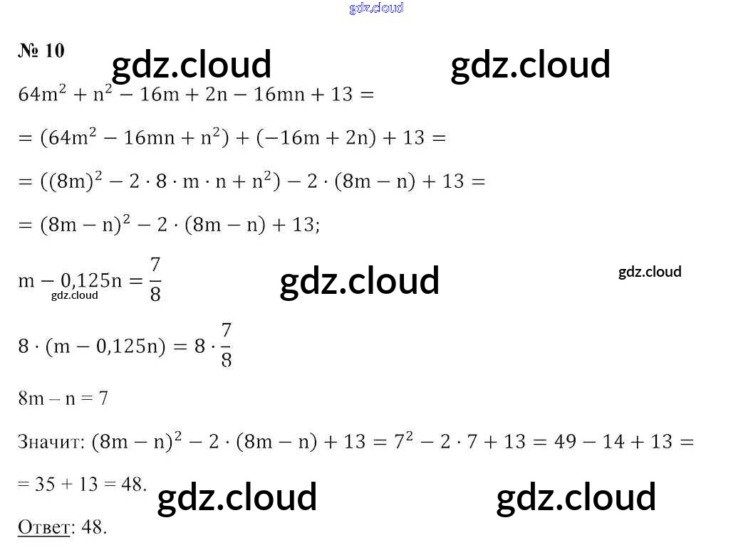 Ответ на задание 10 Учебник Алгебра за 7 (седьмой) класс Арефьева, Пирютко 2017 онлайн и без номера телефона.
