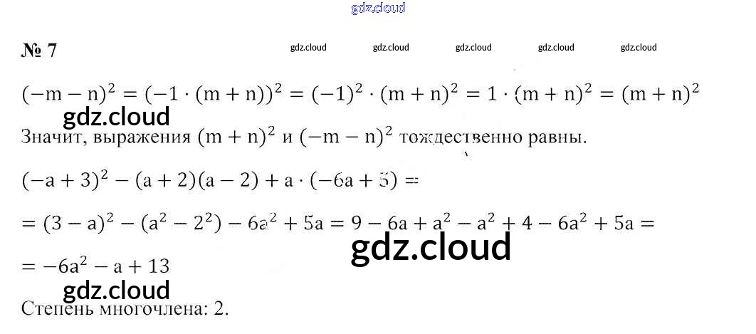 Ответ на задание 7 Учебник Алгебра за 7 (седьмой) класс Арефьева, Пирютко 2017 онлайн и без номера телефона.