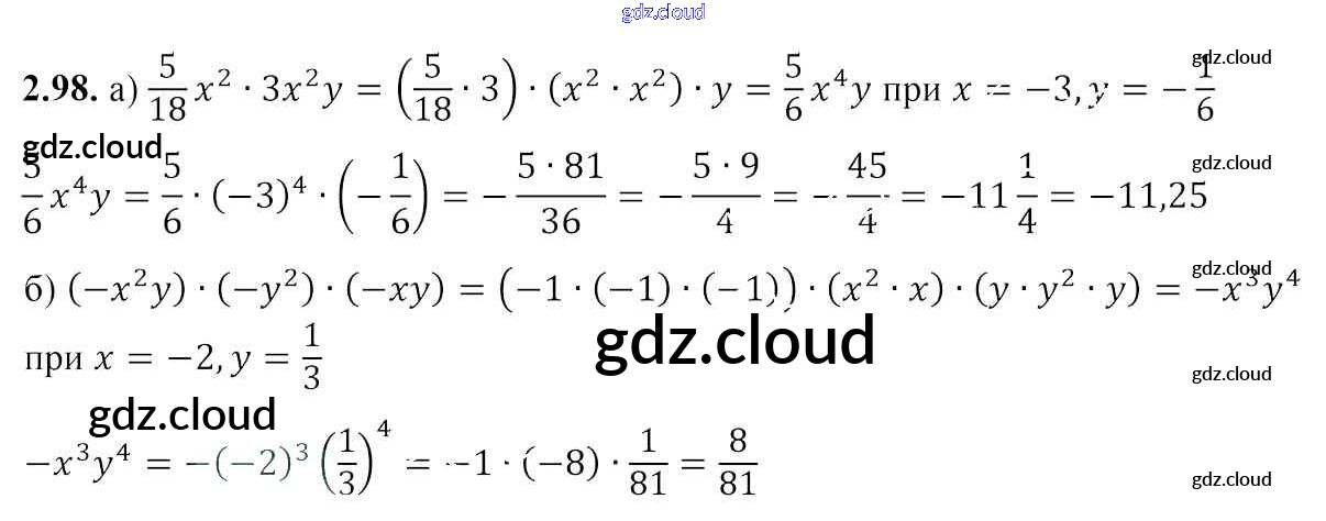 Ответ на задание 2.98 Учебник Алгебра за 7 (седьмой) класс Арефьева, Пирютко 2017 онлайн и без номера телефона.