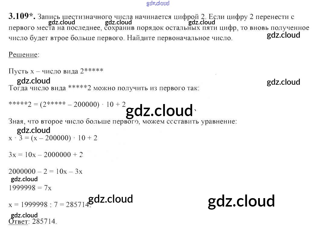 Ответ на задание 3.109 Учебник Алгебра за 7 (седьмой) класс Арефьева, Пирютко 2017 онлайн и без номера телефона.