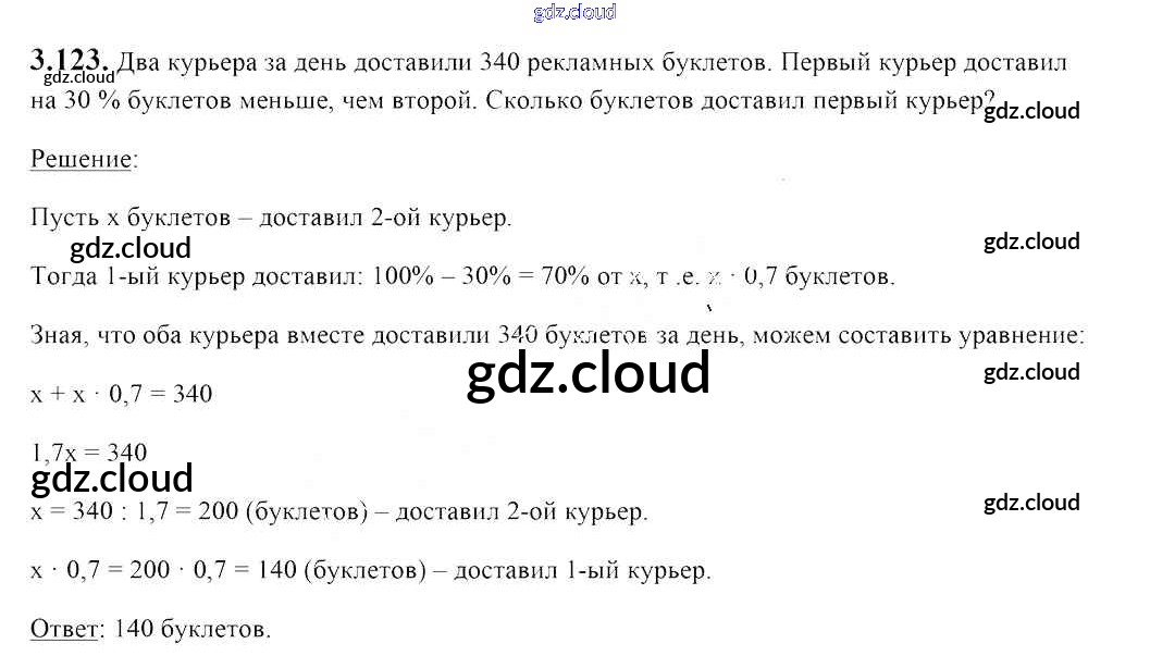 Ответ на задание 3.123 Учебник Алгебра за 7 (седьмой) класс Арефьева, Пирютко 2017 онлайн и без номера телефона.