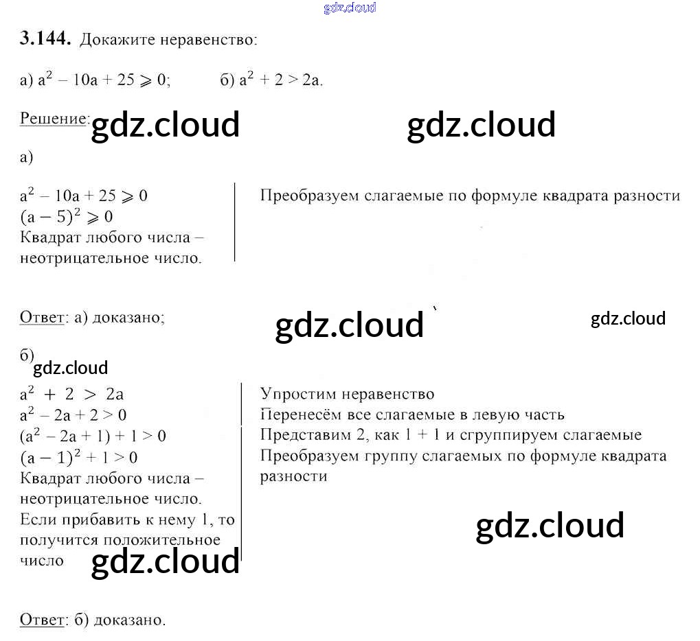 Ответ на задание 3.144 Учебник Алгебра за 7 (седьмой) класс Арефьева, Пирютко 2017 онлайн и без номера телефона.