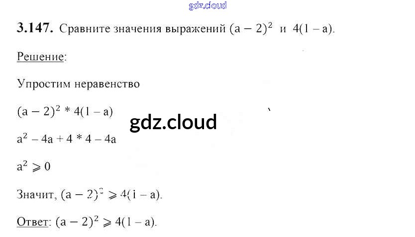 Ответ на задание 3.147 Учебник Алгебра за 7 (седьмой) класс Арефьева, Пирютко 2017 онлайн и без номера телефона.