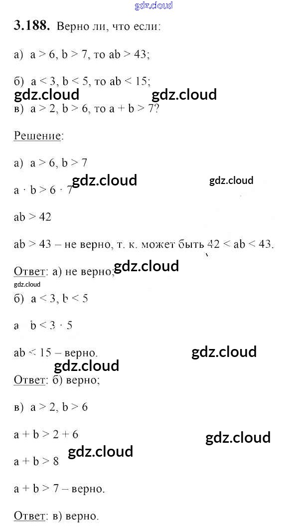 Ответ на задание 3.188 Учебник Алгебра за 7 (седьмой) класс Арефьева, Пирютко 2017 онлайн и без номера телефона.