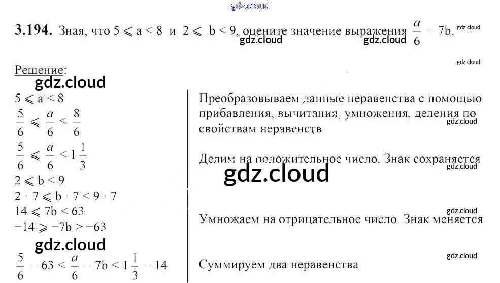 Ответ на задание 3.194 Учебник Алгебра за 7 (седьмой) класс Арефьева, Пирютко 2017 онлайн и без номера телефона.