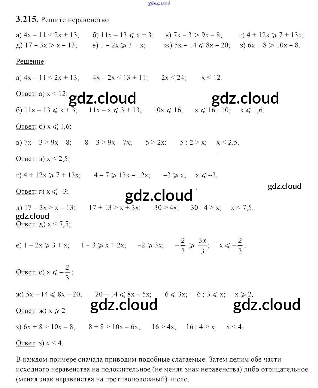 Ответ на задание 3.215 Учебник Алгебра за 7 (седьмой) класс Арефьева, Пирютко 2017 онлайн и без номера телефона.
