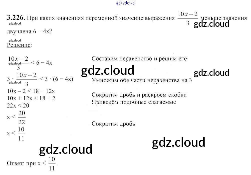 Ответ на задание 3.226 Учебник Алгебра за 7 (седьмой) класс Арефьева, Пирютко 2017 онлайн и без номера телефона.