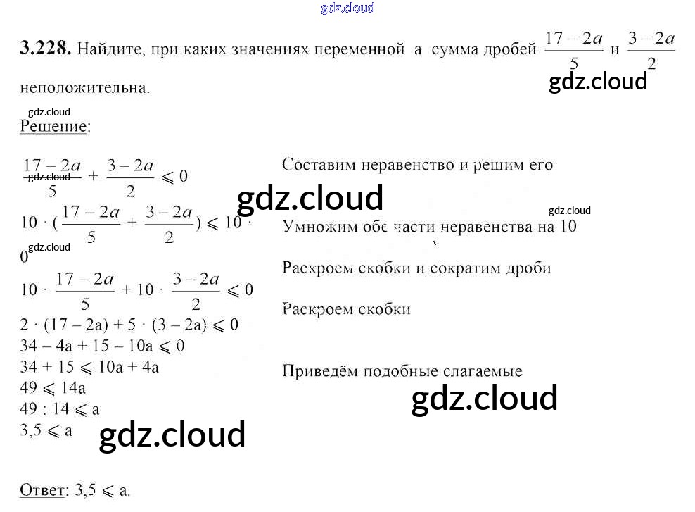 Ответ на задание 3.228 Учебник Алгебра за 7 (седьмой) класс Арефьева, Пирютко 2017 онлайн и без номера телефона.