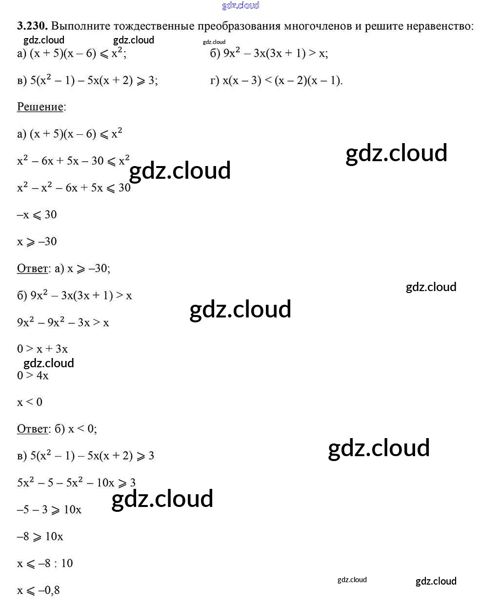 Ответ на задание 3.230 Учебник Алгебра за 7 (седьмой) класс Арефьева, Пирютко 2017 онлайн и без номера телефона.