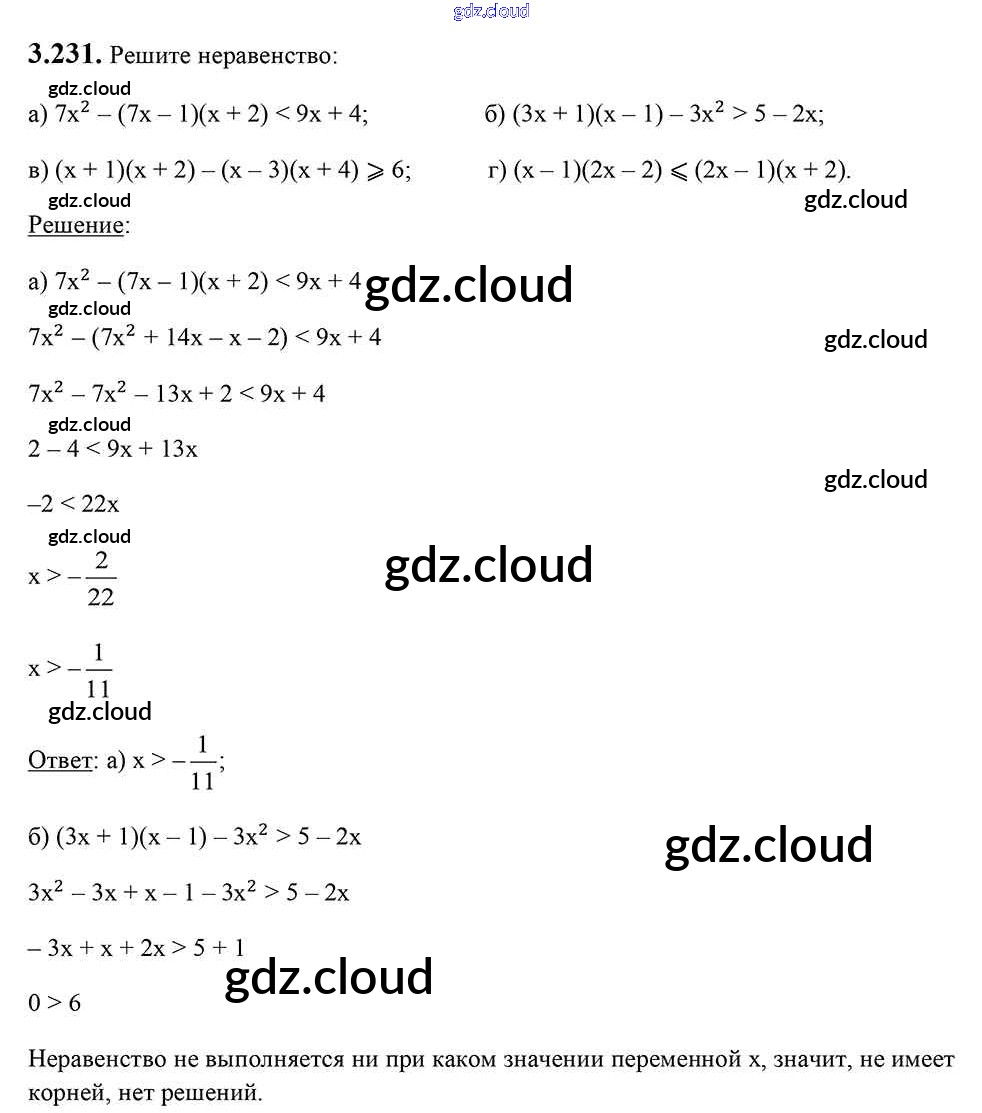Ответ на задание 3.231 Учебник Алгебра за 7 (седьмой) класс Арефьева, Пирютко 2017 онлайн и без номера телефона.