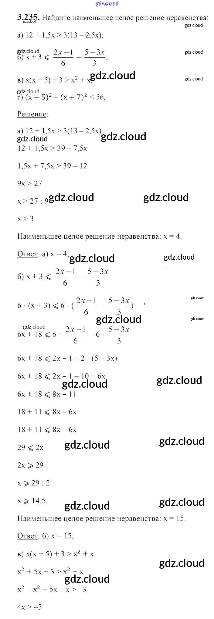 Ответ на задание 3.235 Учебник Алгебра за 7 (седьмой) класс Арефьева, Пирютко 2017 онлайн и без номера телефона.