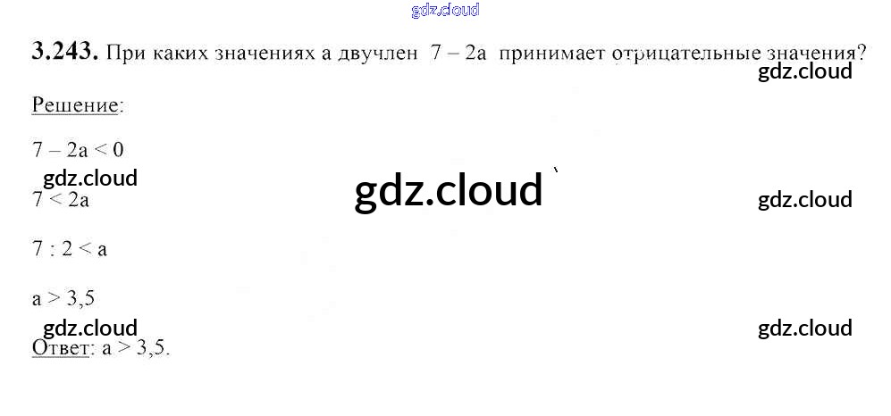Ответ на задание 3.243 Учебник Алгебра за 7 (седьмой) класс Арефьева, Пирютко 2017 онлайн и без номера телефона.