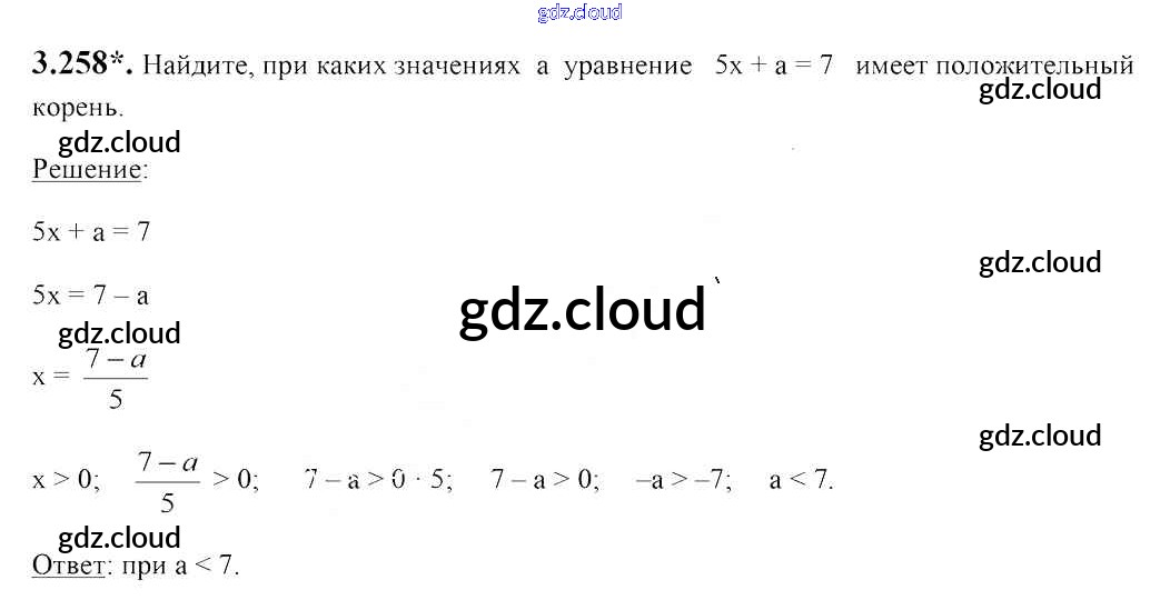 Ответ на задание 3.258 Учебник Алгебра за 7 (седьмой) класс Арефьева, Пирютко 2017 онлайн и без номера телефона.