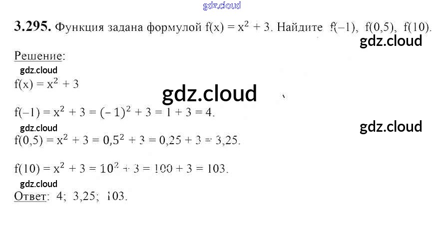 Ответ на задание 3.295 Учебник Алгебра за 7 (седьмой) класс Арефьева, Пирютко 2017 онлайн и без номера телефона.