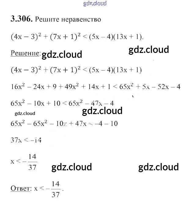 Ответ на задание 3.306 Учебник Алгебра за 7 (седьмой) класс Арефьева, Пирютко 2017 онлайн и без номера телефона.