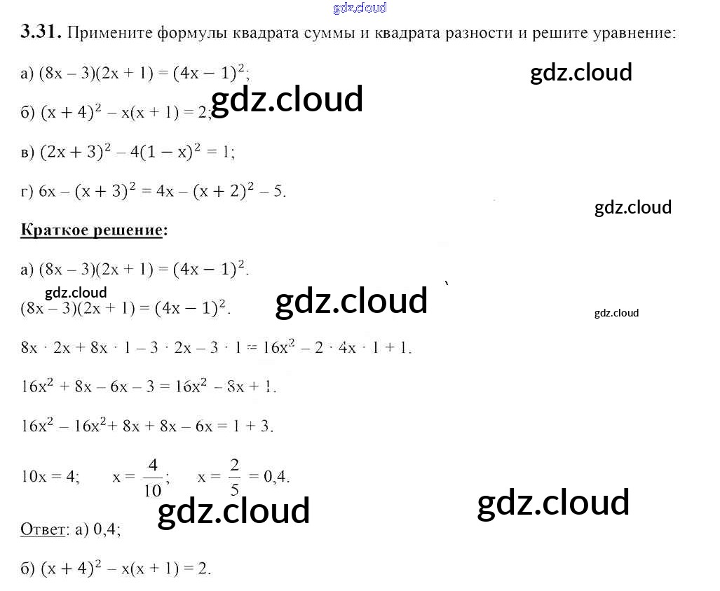 Ответ на задание 3.31 Учебник Алгебра за 7 (седьмой) класс Арефьева, Пирютко 2017 онлайн и без номера телефона.