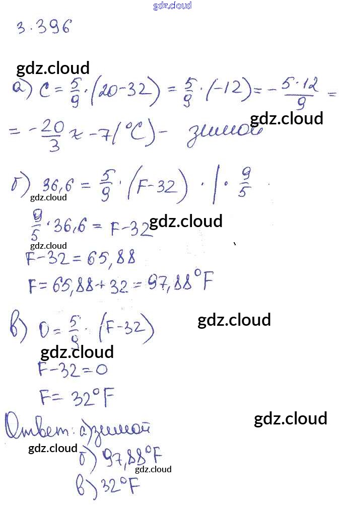 Ответ на задание 3.396 Учебник Алгебра за 7 (седьмой) класс Арефьева, Пирютко 2017 онлайн и без номера телефона.