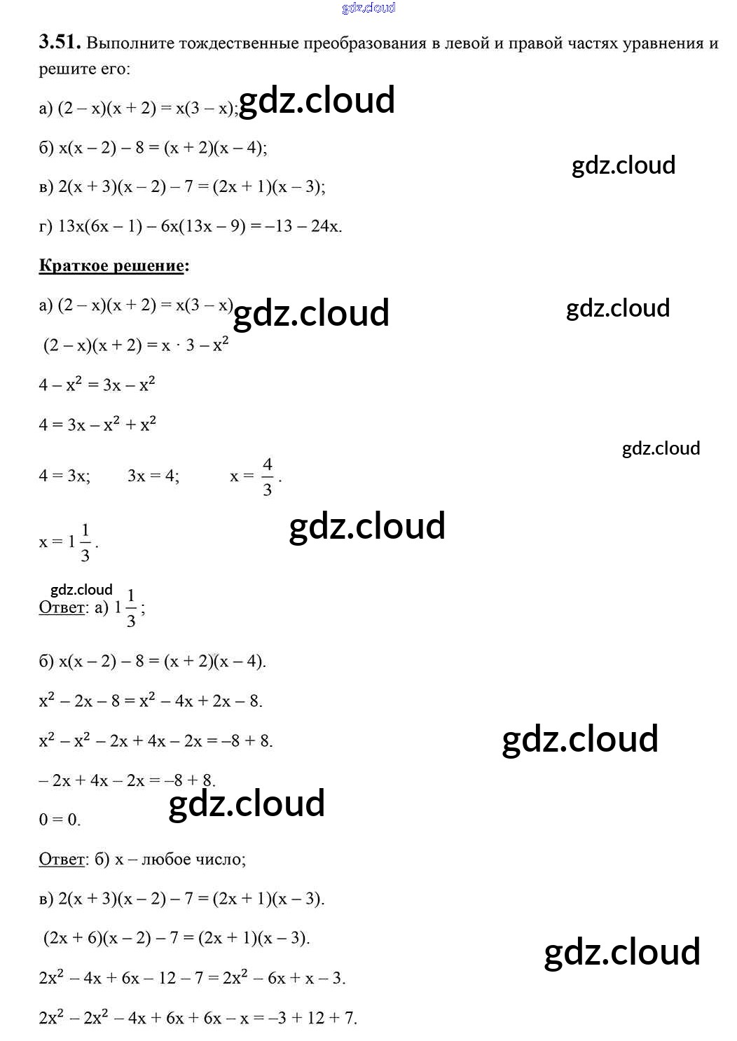 Ответ на задание 3.51 Учебник Алгебра за 7 (седьмой) класс Арефьева, Пирютко 2017 онлайн и без номера телефона.