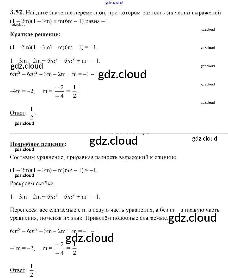 Ответ на задание 3.52 Учебник Алгебра за 7 (седьмой) класс Арефьева, Пирютко 2017 онлайн и без номера телефона.