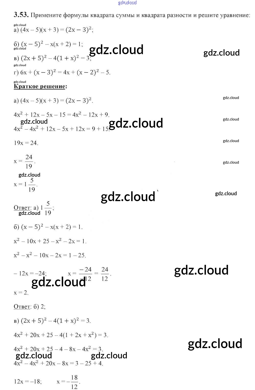 Ответ на задание 3.53 Учебник Алгебра за 7 (седьмой) класс Арефьева, Пирютко 2017 онлайн и без номера телефона.