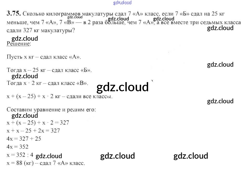 Ответ на задание 3.75 Учебник Алгебра за 7 (седьмой) класс Арефьева, Пирютко 2017 онлайн и без номера телефона.