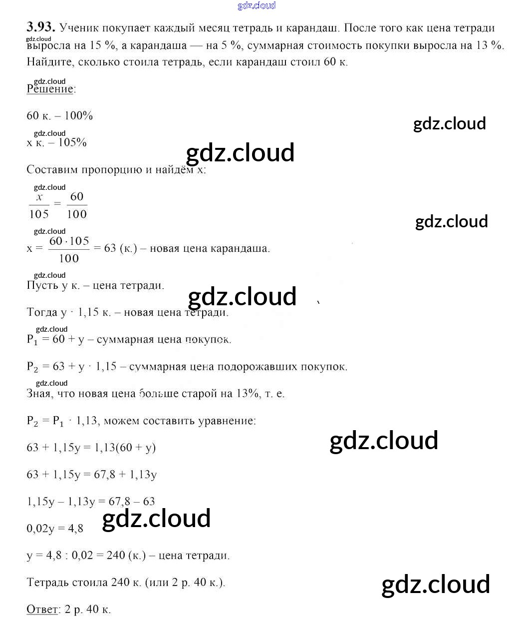 Ответ на задание 3.93 Учебник Алгебра за 7 (седьмой) класс Арефьева, Пирютко 2017 онлайн и без номера телефона.