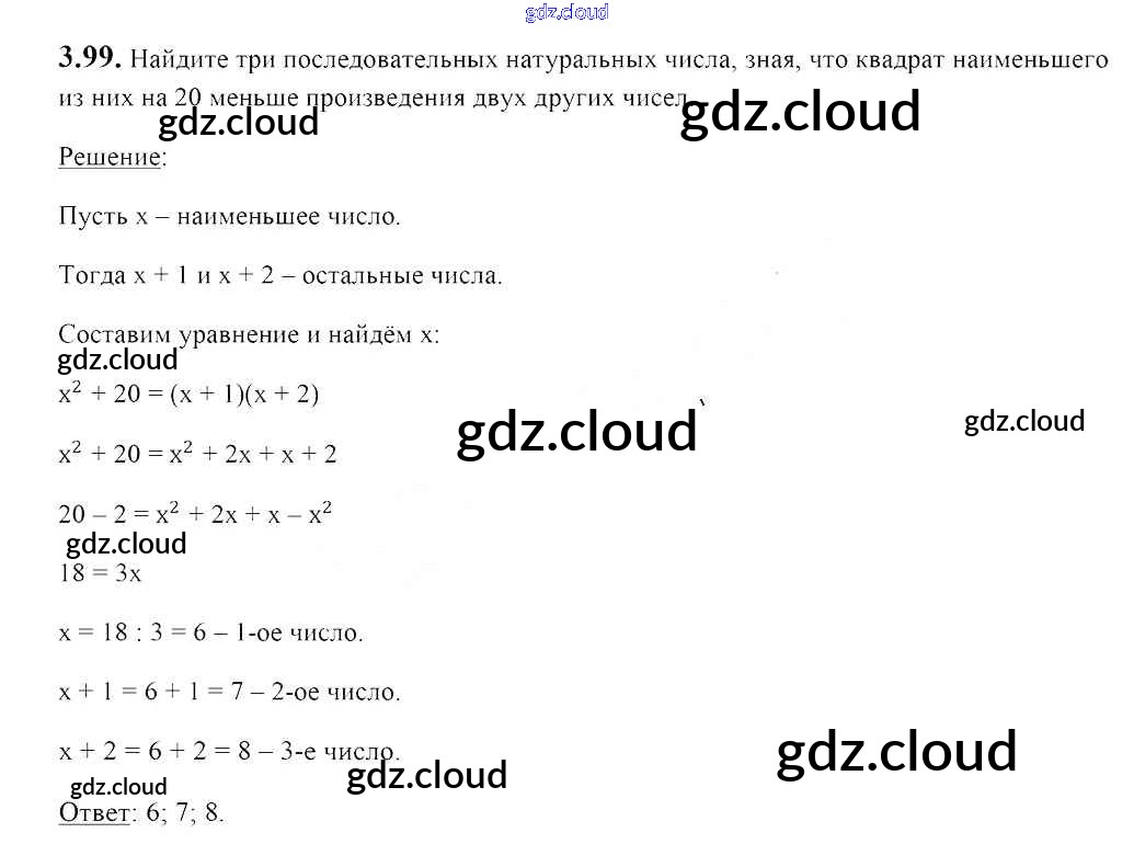 Ответ на задание 3.99 Учебник Алгебра за 7 (седьмой) класс Арефьева, Пирютко 2017 онлайн и без номера телефона.