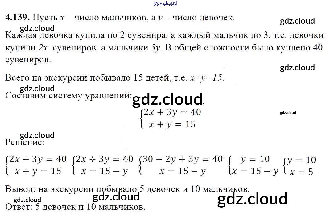 Ответ на задание 4.139 Учебник Алгебра за 7 (седьмой) класс Арефьева, Пирютко 2017 онлайн и без номера телефона.