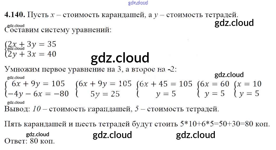 Ответ на задание 4.140 Учебник Алгебра за 7 (седьмой) класс Арефьева, Пирютко 2017 онлайн и без номера телефона.