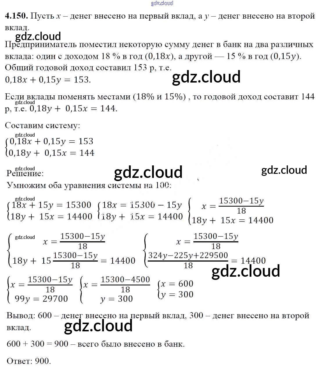 Ответ на задание 4.150 Учебник Алгебра за 7 (седьмой) класс Арефьева, Пирютко 2017 онлайн и без номера телефона.