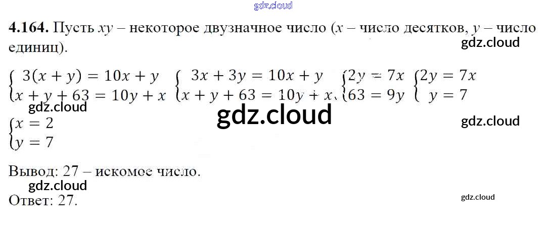 Ответ на задание 4.164 Учебник Алгебра за 7 (седьмой) класс Арефьева, Пирютко 2017 онлайн и без номера телефона.