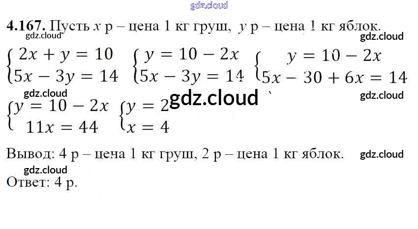 Ответ на задание 4.167 Учебник Алгебра за 7 (седьмой) класс Арефьева, Пирютко 2017 онлайн и без номера телефона.