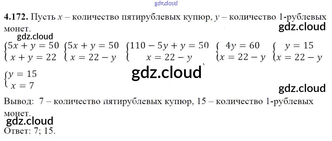Ответ на задание 4.172 Учебник Алгебра за 7 (седьмой) класс Арефьева, Пирютко 2017 онлайн и без номера телефона.
