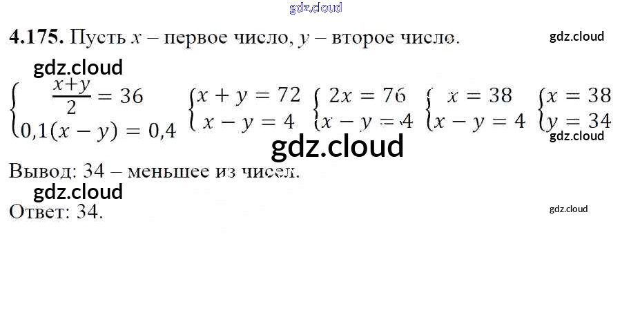 Ответ на задание 4.175 Учебник Алгебра за 7 (седьмой) класс Арефьева, Пирютко 2017 онлайн и без номера телефона.