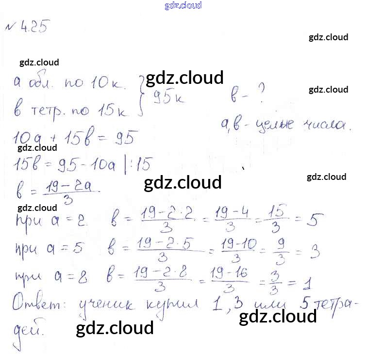 Ответ на задание 4.25 Учебник Алгебра за 7 (седьмой) класс Арефьева, Пирютко 2017 онлайн и без номера телефона.