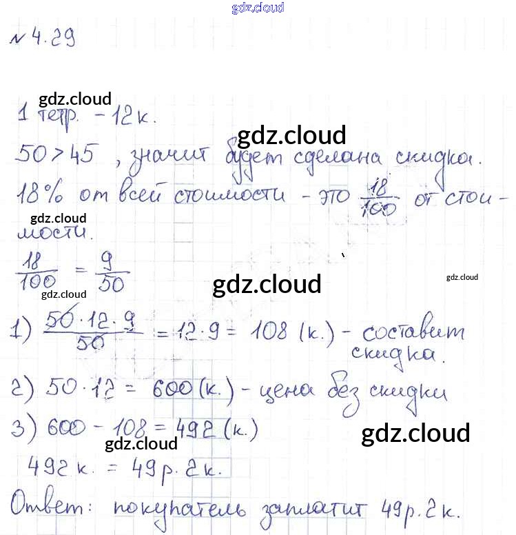Ответ на задание 4.29 Учебник Алгебра за 7 (седьмой) класс Арефьева, Пирютко 2017 онлайн и без номера телефона.