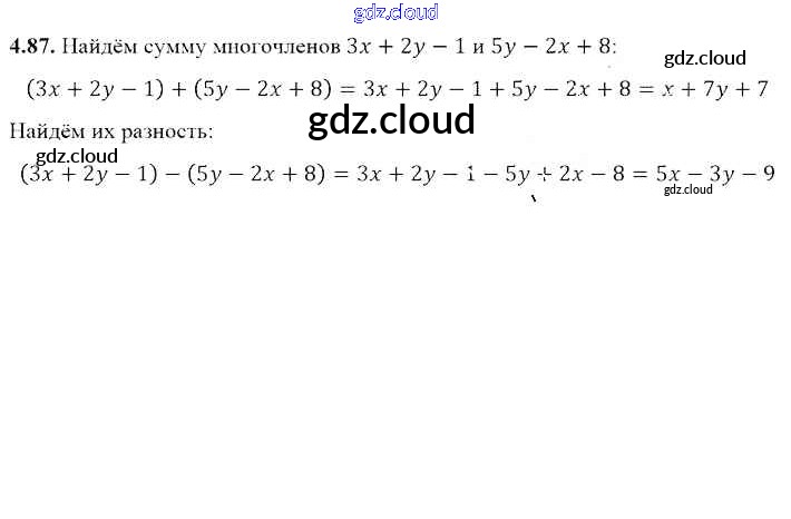 Ответ на задание 4.87 Учебник Алгебра за 7 (седьмой) класс Арефьева, Пирютко 2017 онлайн и без номера телефона.