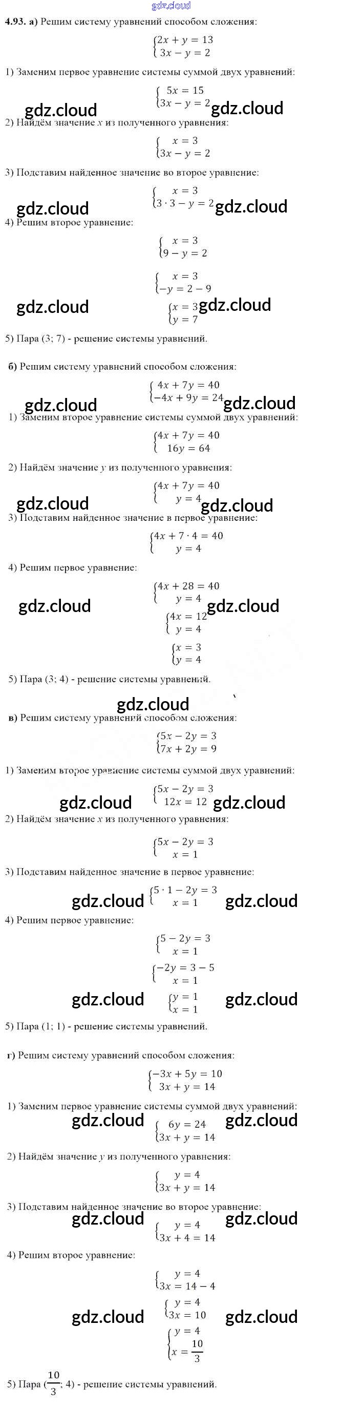 Ответ на задание 4.93 Учебник Алгебра за 7 (седьмой) класс Арефьева, Пирютко 2017 онлайн и без номера телефона.