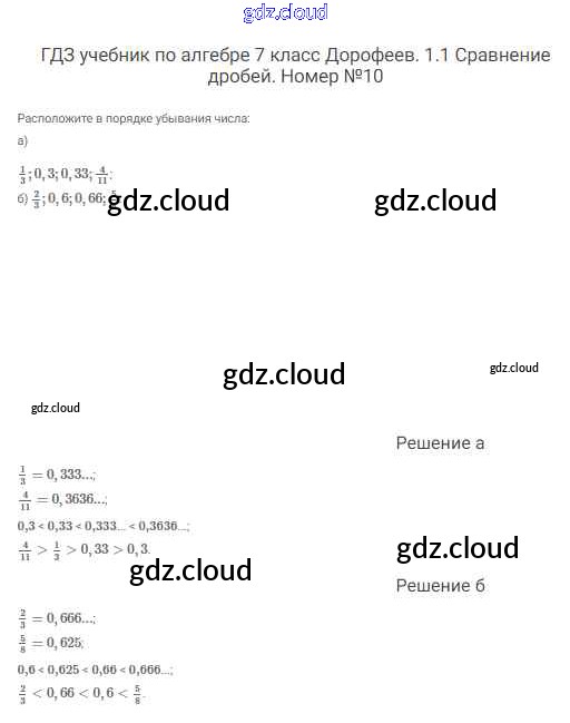 Ответ на задание 10 Учебник Алгебра  за 7 (седьмой) класс Дорофеев, Суворова, Бунимович Академический школьный учебник  2020