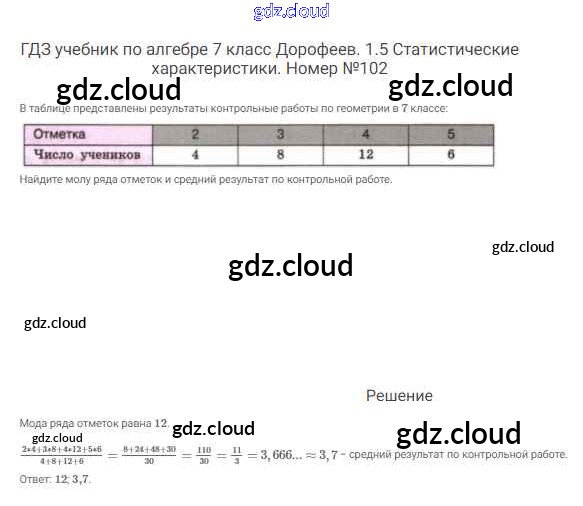 Ответ на задание 102 Учебник Алгебра  за 7 (седьмой) класс Дорофеев, Суворова, Бунимович Академический школьный учебник  2020