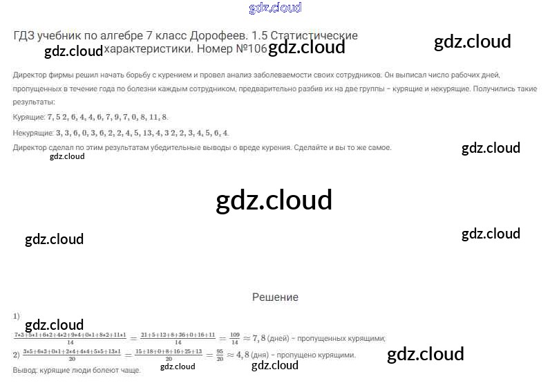 Ответ на задание 106 Учебник Алгебра  за 7 (седьмой) класс Дорофеев, Суворова, Бунимович Академический школьный учебник  2020