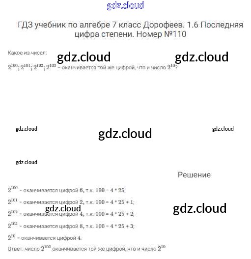 Ответ на задание 110 Учебник Алгебра за 7 (седьмой) класс Дорофеев, Суворова, Бунимович Академический школьный учебник 2020