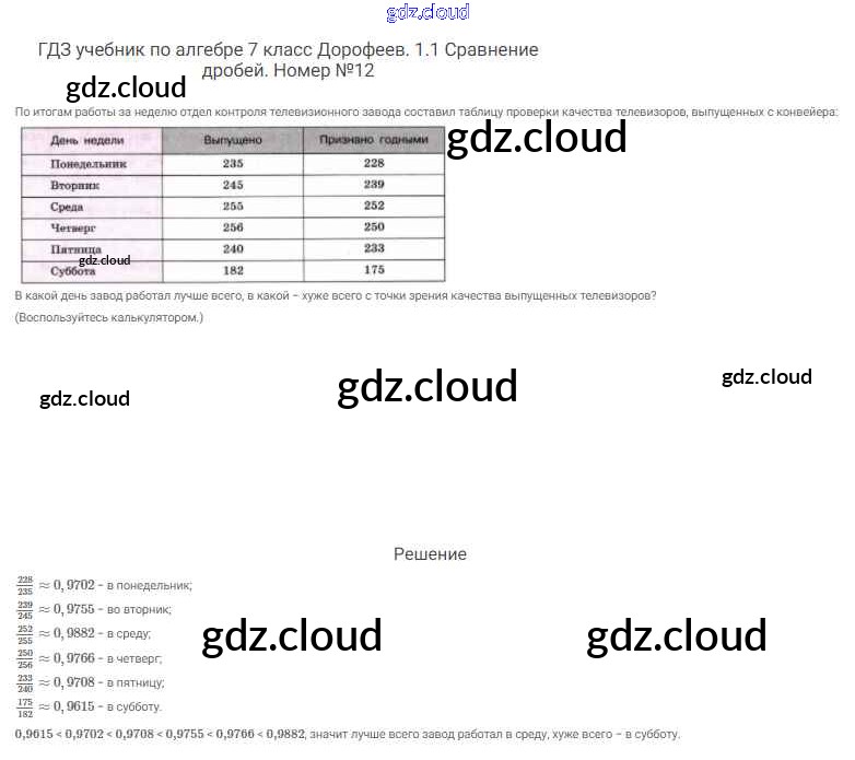 Ответ на задание 12 Учебник Алгебра  за 7 (седьмой) класс Дорофеев, Суворова, Бунимович Академический школьный учебник  2020