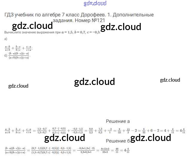 Ответ на задание 121 Учебник Алгебра  за 7 (седьмой) класс Дорофеев, Суворова, Бунимович Академический школьный учебник  2020