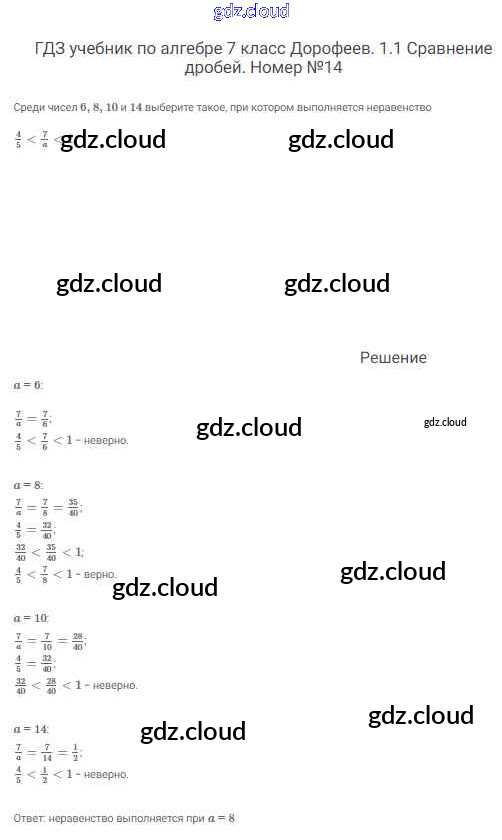 Ответ на задание 14 Учебник Алгебра  за 7 (седьмой) класс Дорофеев, Суворова, Бунимович Академический школьный учебник  2020