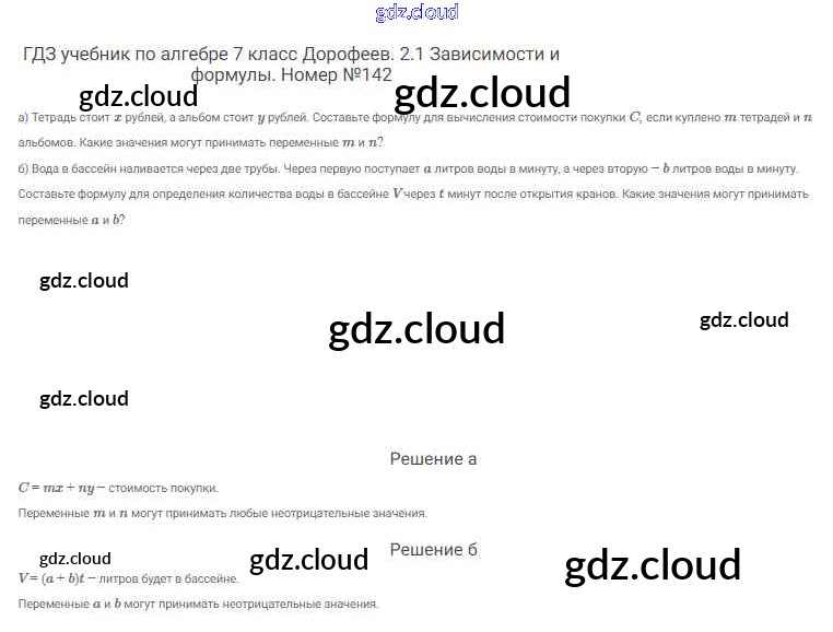 Ответ на задание 142 Учебник Алгебра  за 7 (седьмой) класс Дорофеев, Суворова, Бунимович Академический школьный учебник  2020