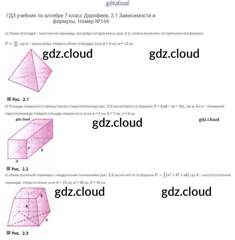 Ответ на задание 144 Учебник Алгебра  за 7 (седьмой) класс Дорофеев, Суворова, Бунимович Академический школьный учебник  2020