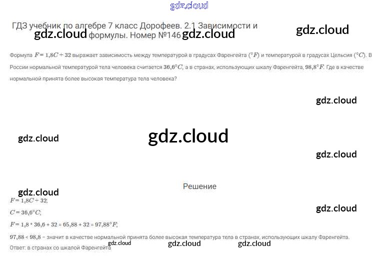 Ответ на задание 146 Учебник Алгебра  за 7 (седьмой) класс Дорофеев, Суворова, Бунимович Академический школьный учебник  2020