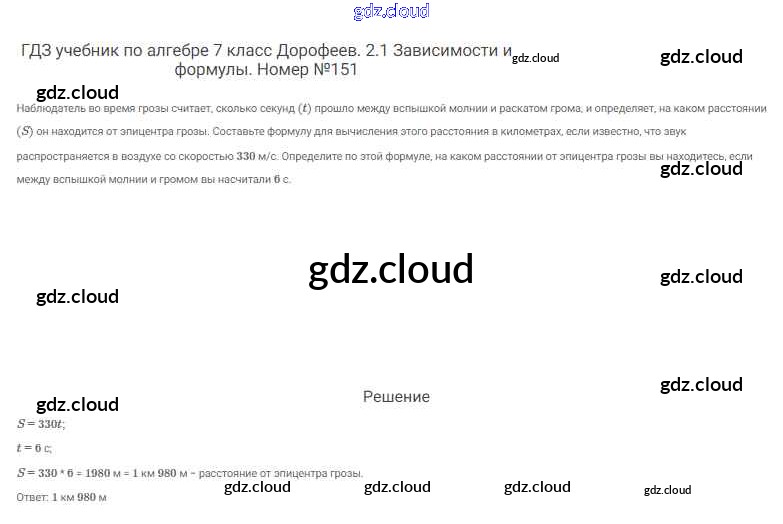 Ответ на задание 151 Учебник Алгебра  за 7 (седьмой) класс Дорофеев, Суворова, Бунимович Академический школьный учебник  2020